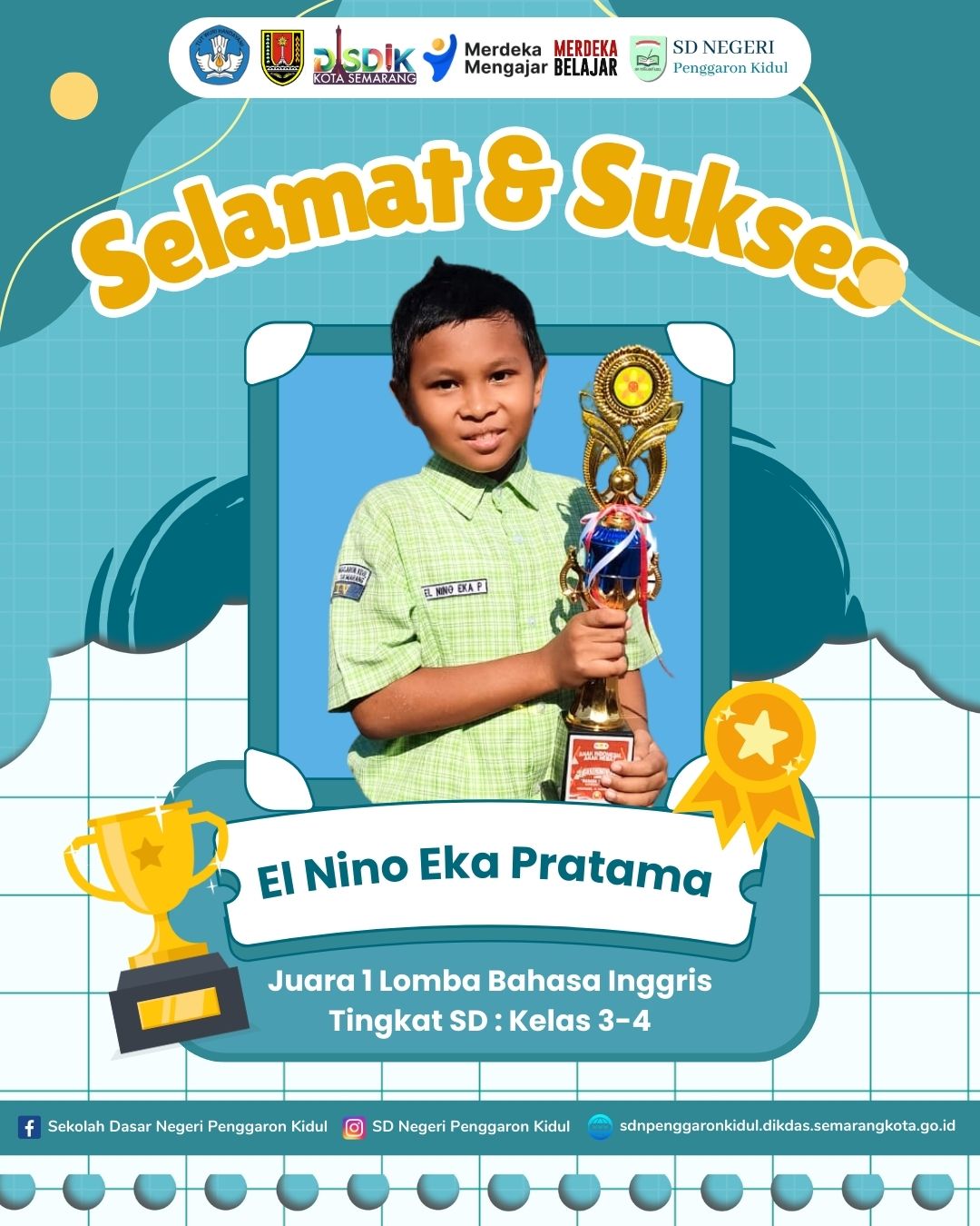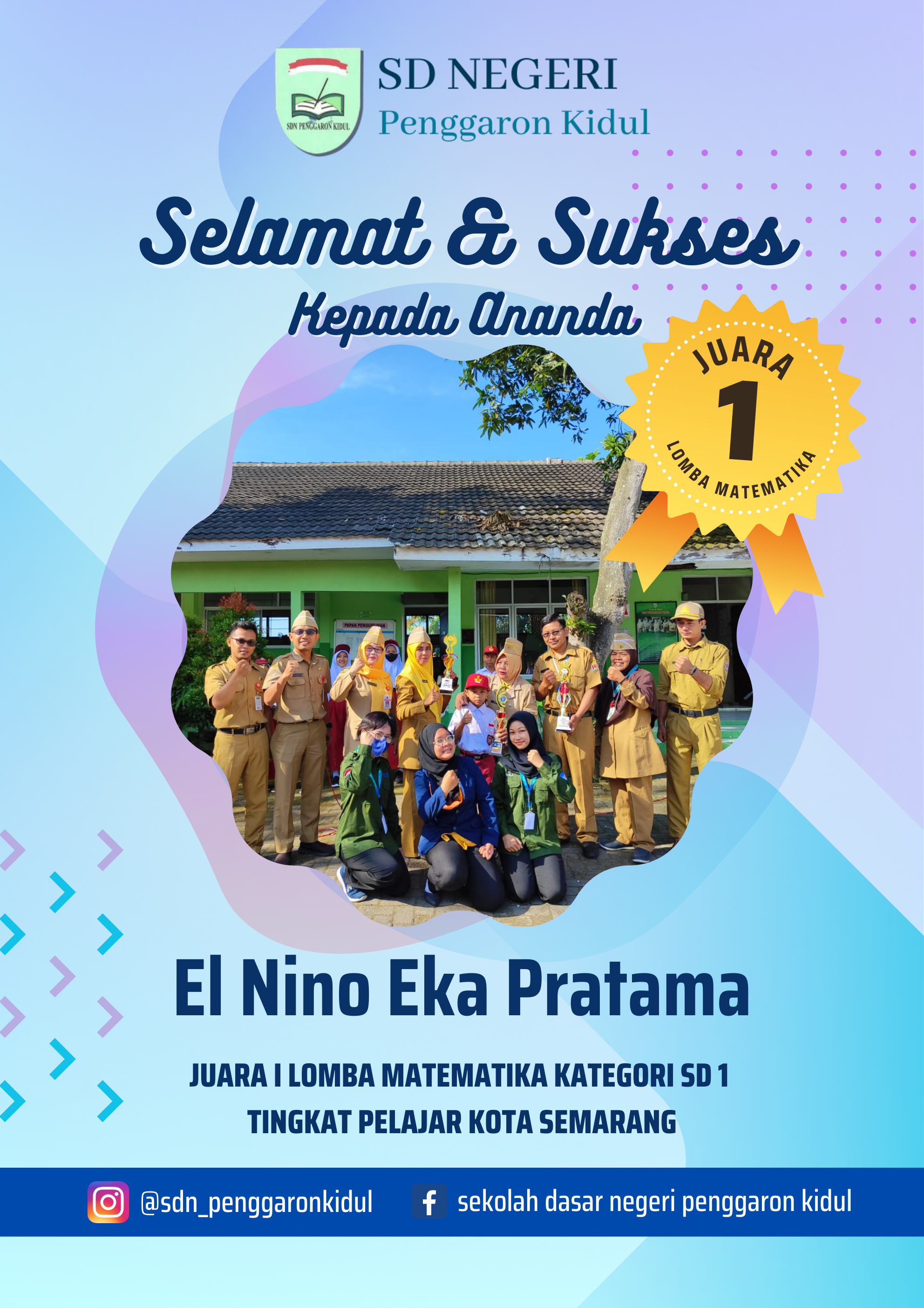 Mimin mau menyampaikan beberapa galeri foto tentang siswa-siswi di SD Negeri penggaron Kidul yang telah berprestasi di tahun ini. Semoga menjadi penyemangat bagi siswa-siswi lainnya untuk terus berprestasi ya. Yossshhhhh....langsung kita intip foto-fotonya ya!